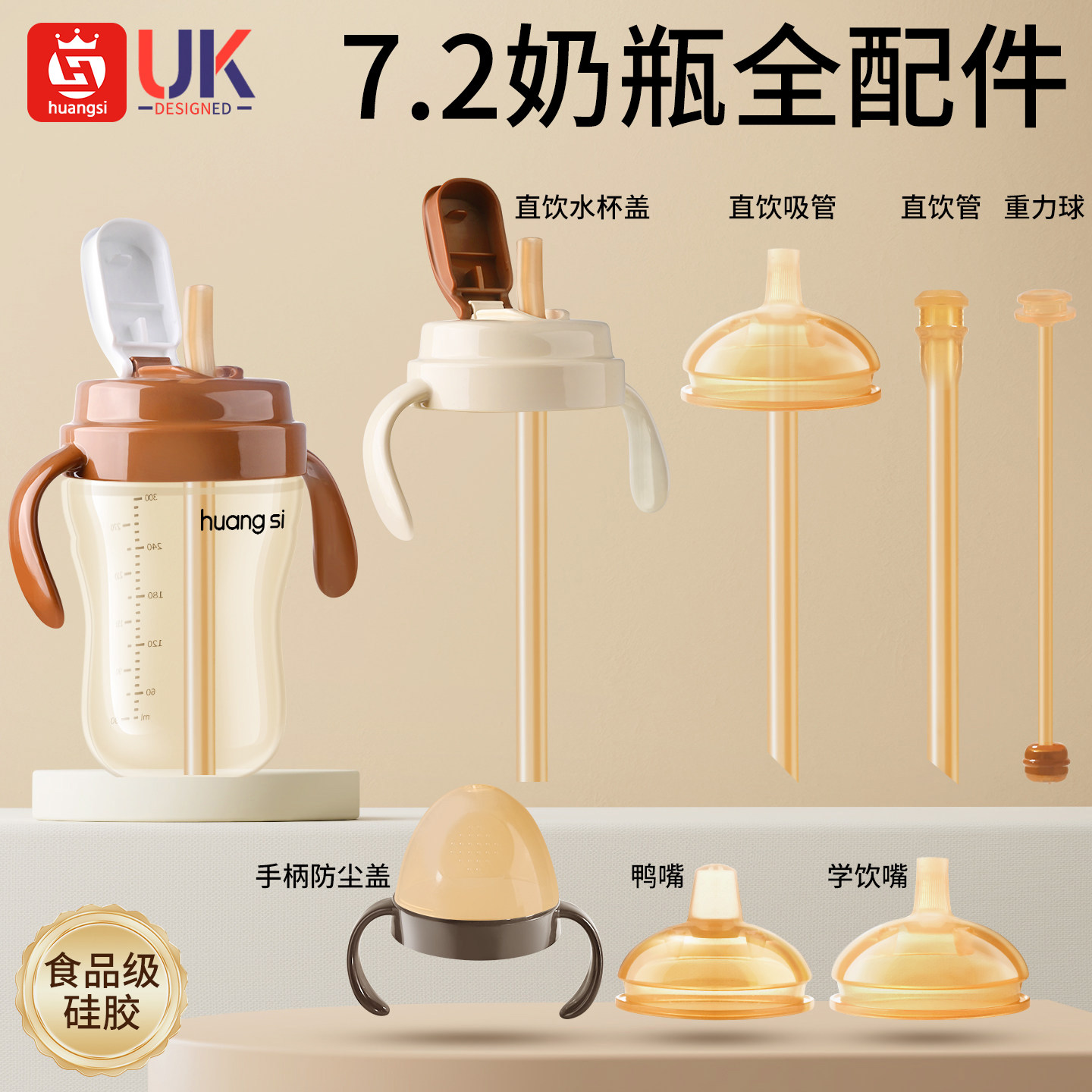 适配世喜直饮吸管奶瓶配件替换奶嘴鸭嘴重力球把手柄学饮嘴杯盖头