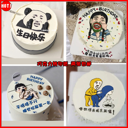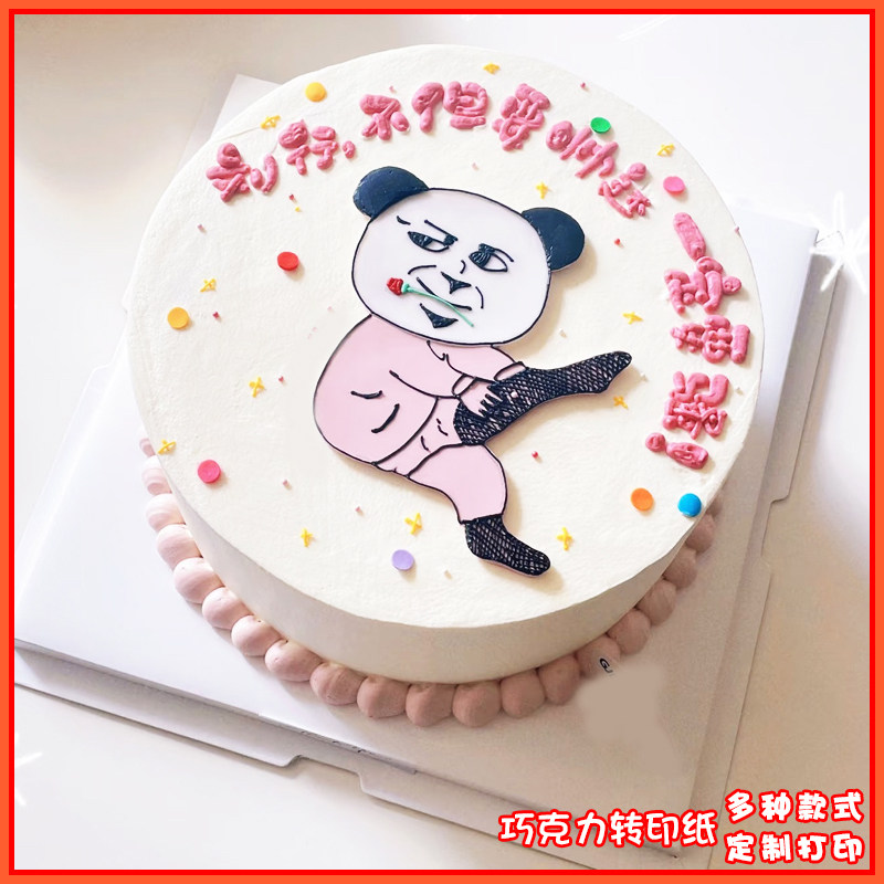 恶搞熊猫表情标语生日蛋糕装饰搞怪男士如花巧克力转印纸烘焙用纸