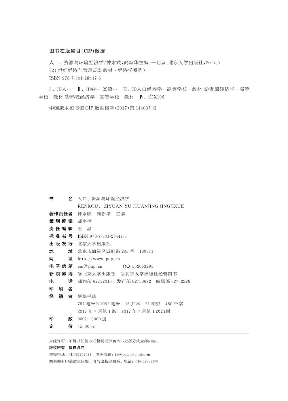 人口、资源与环境经济学 经济与管理教材 经济学系列 北京大学旗舰店正版
