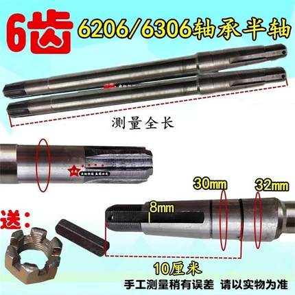 摩托电动三四轮车后桥传动6齿花键10公分头6206 6306轴承半轴包邮