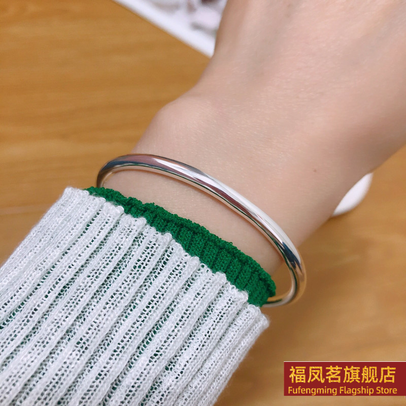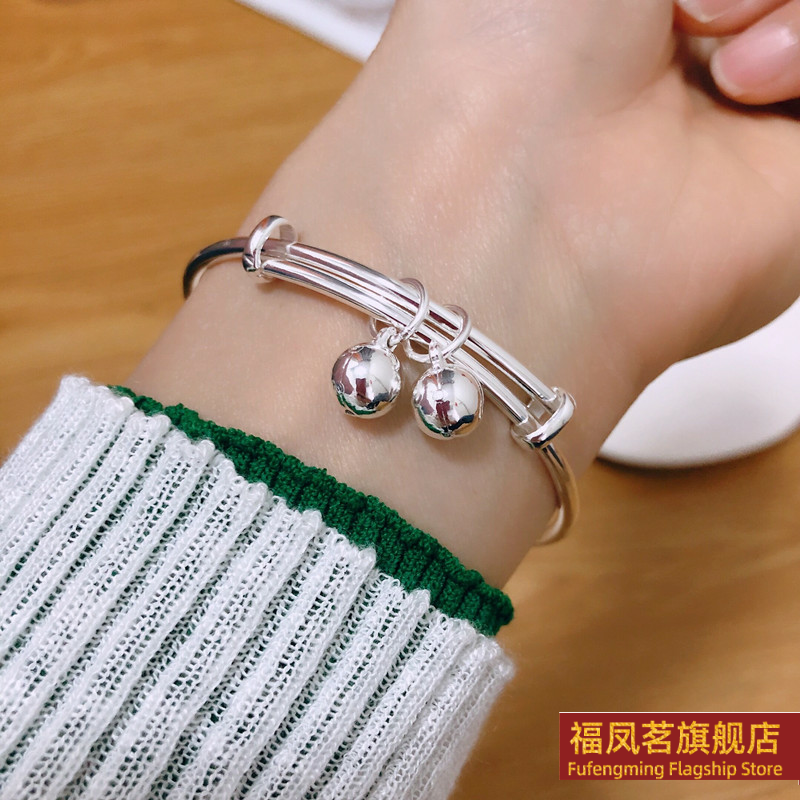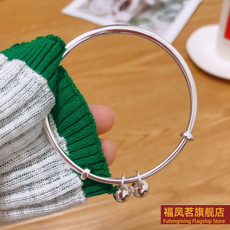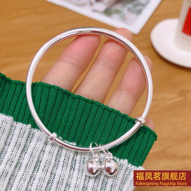正生光面双铃铛纯银手镯足银999女小众设计实心银饰品送女友闺蜜