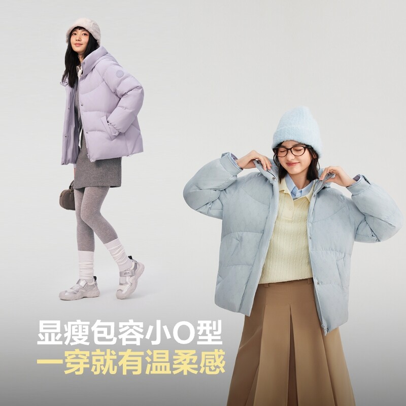 波司登25新款简约时尚休闲短款潮流时尚百搭厚连帽羽绒服女