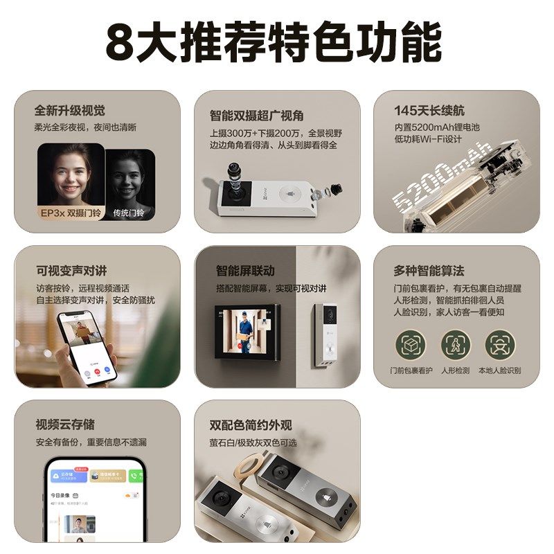 萤石EP3x智能电子可视对讲双摄门铃CP3手机无线监视摄影机摄影头