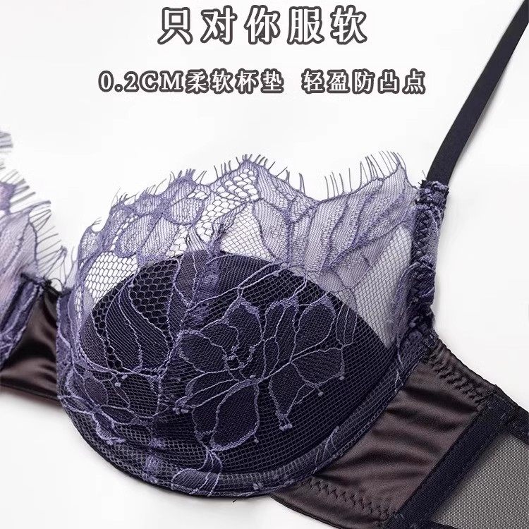 维多利亚玛丽莎睫毛蕾丝性感镂空内衣女薄舒适上托聚拢文胸罩套装