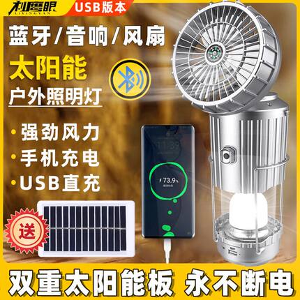 USB太阳能风扇马灯户外手电筒直充露营灯帐篷灯应急充电宝蓝牙灯