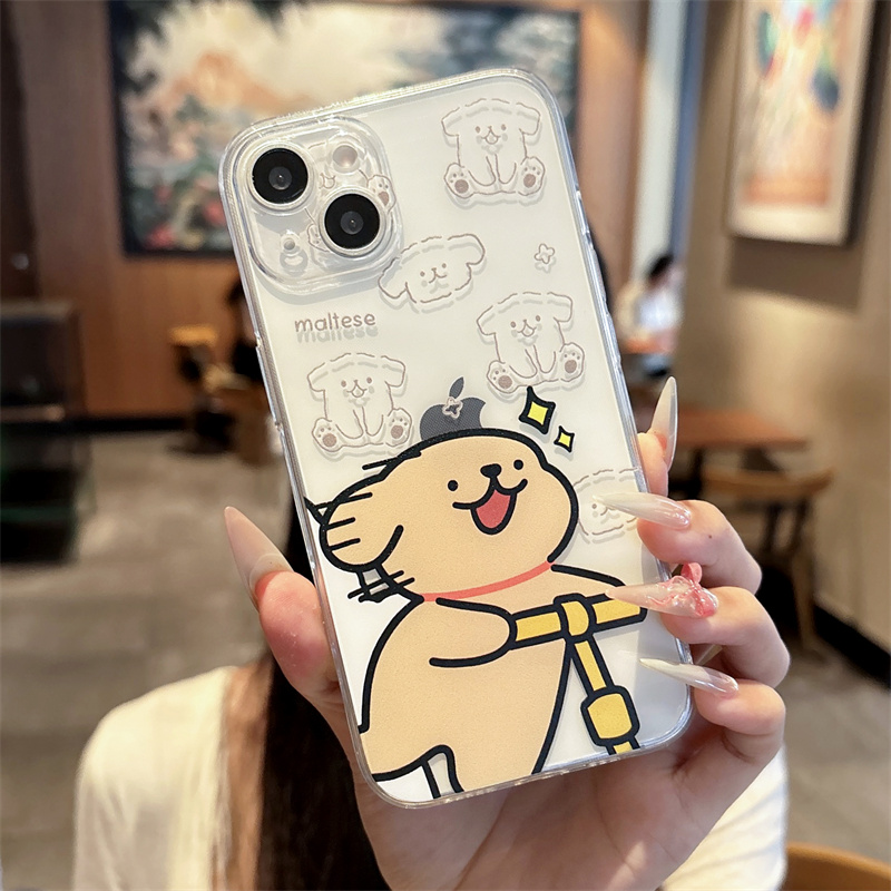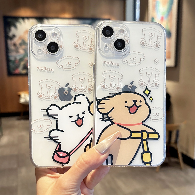 骑车线条小狗适用苹果16promax手机壳iphone15新款14plus情侣13创意12mini卡通11男女17透明xr软胶8/7/6全包