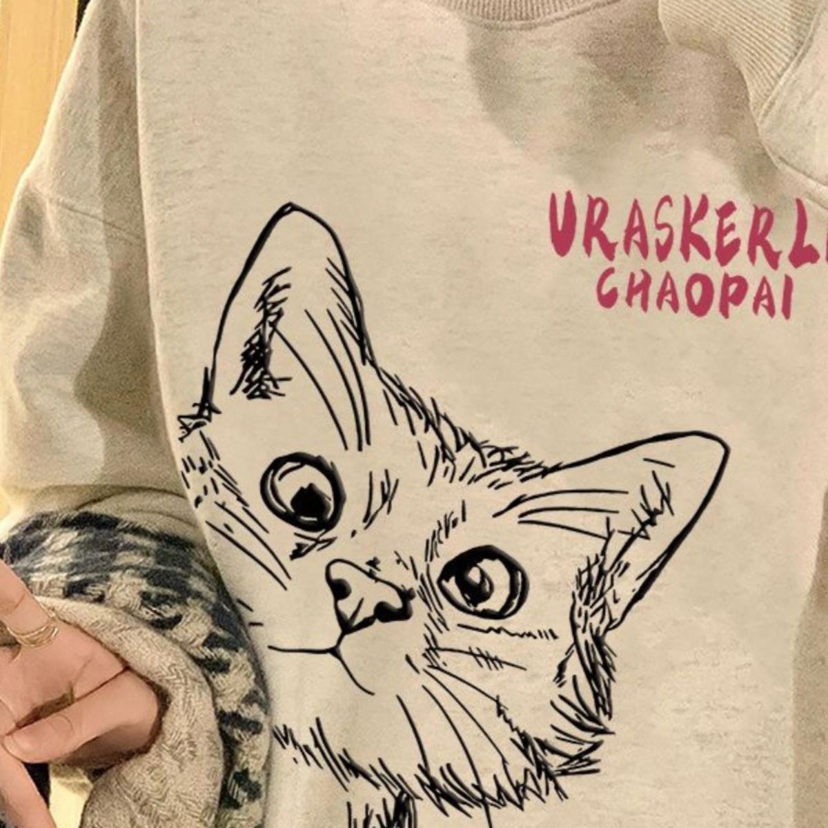 港风美式复古日系潮流圆领卫衣女春秋薄款宽松韩版慵懒风上衣外套