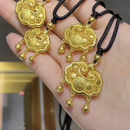 金包银平安福字吊坠女款平安如意锁平安长命锁挂坠不掉色首饰品