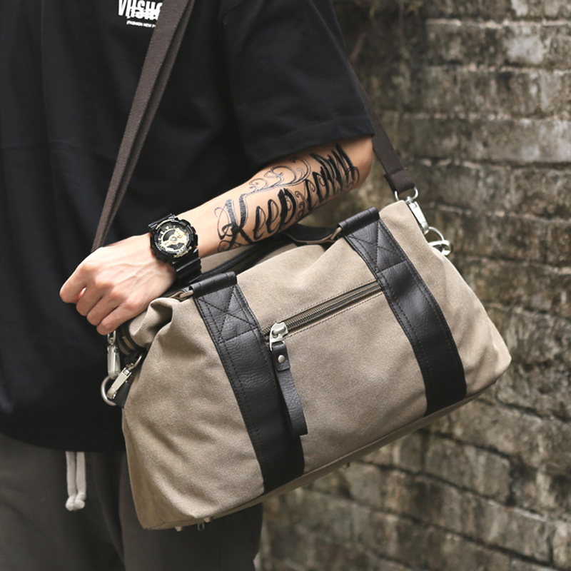 男士短途出行旅行包男款单肩斜挎包包男旅游外出帆布男包小手提包