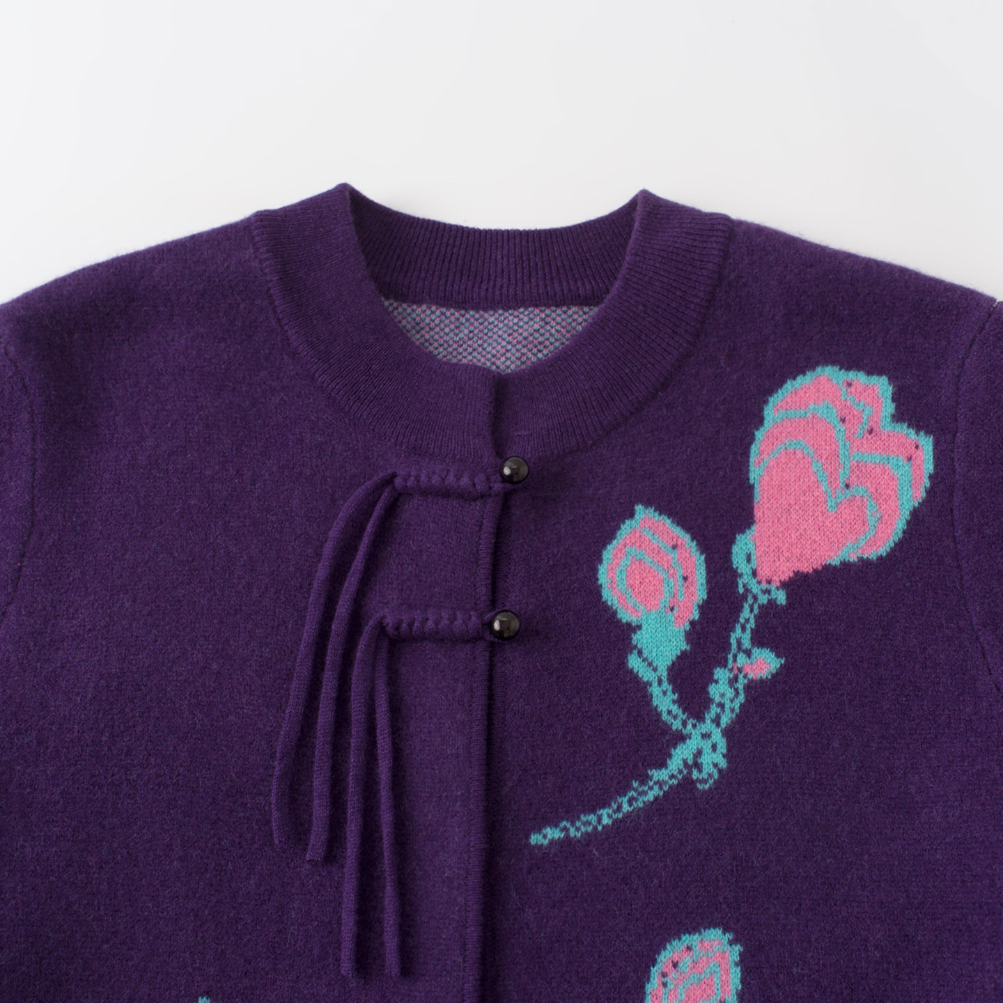 女士立领国风盘扣加厚纯羊毛衫宽松休闲大码妈妈针织毛衣秋冬新品
