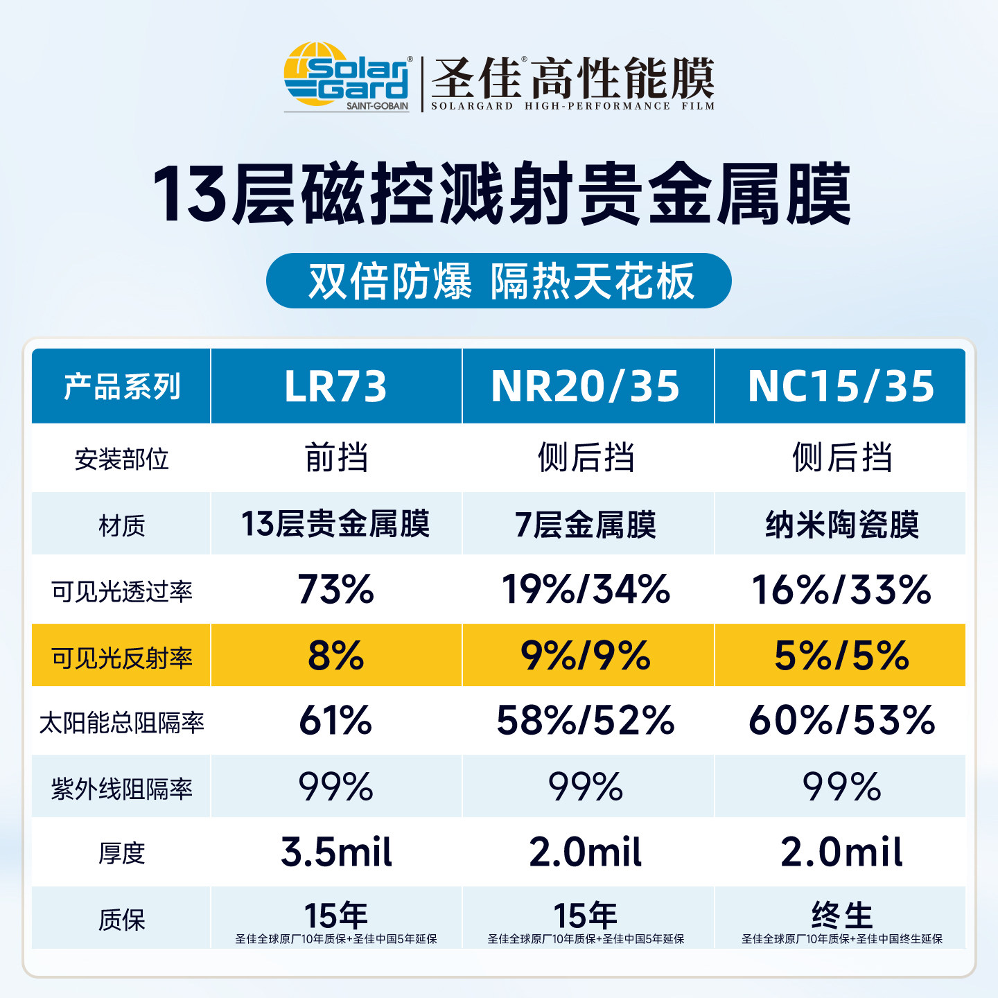 SolarGard圣佳汽车贴膜玻璃隔热膜防晒膜LR70升级LR73旗舰隔热膜