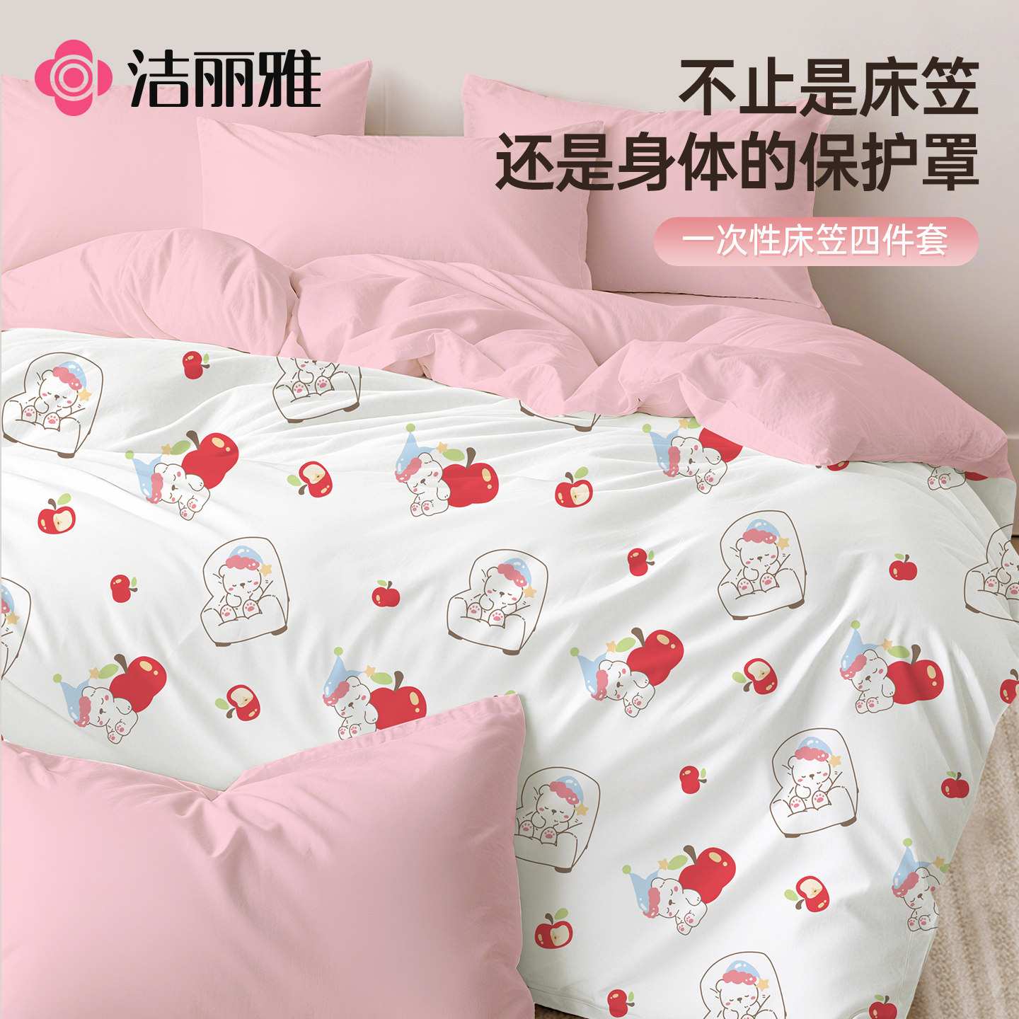 洁丽雅一次性床笠床单抗菌被罩枕套四件套旅游行酒店隔脏床上用品