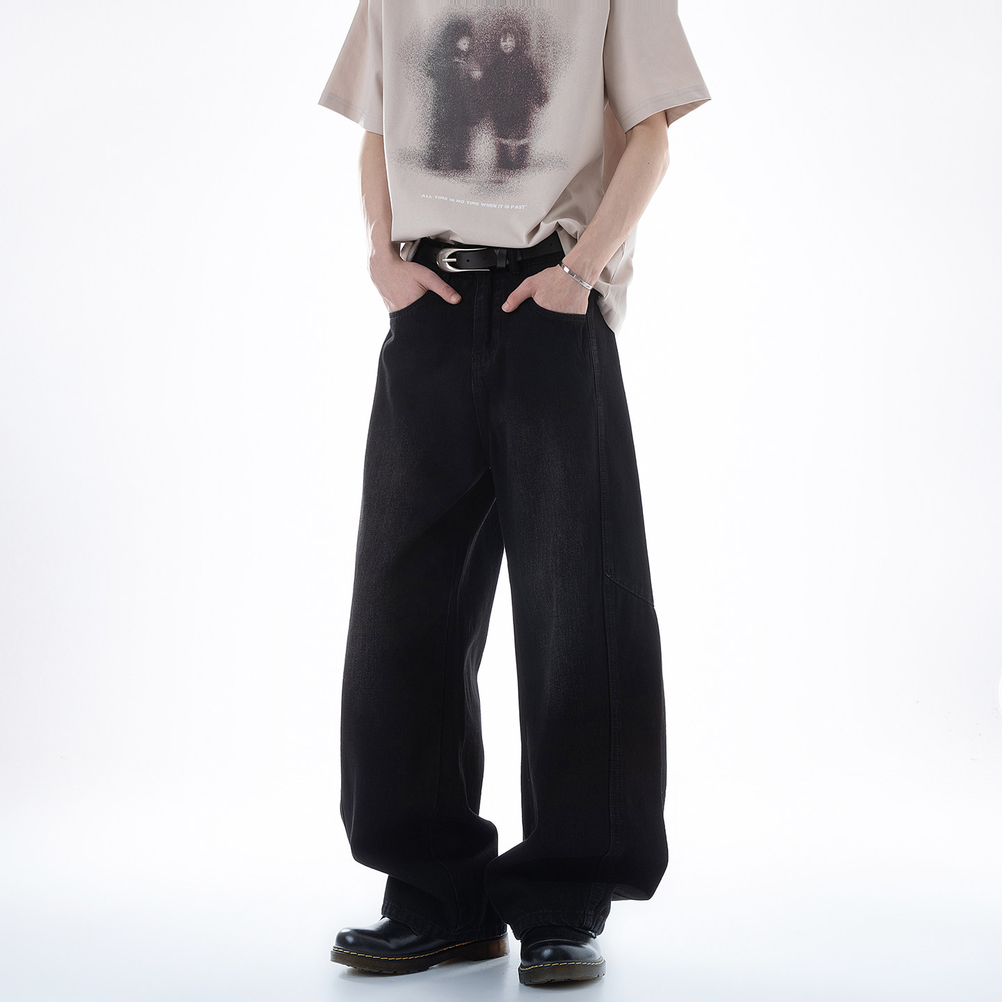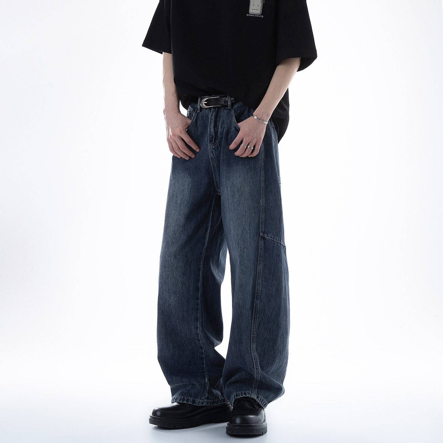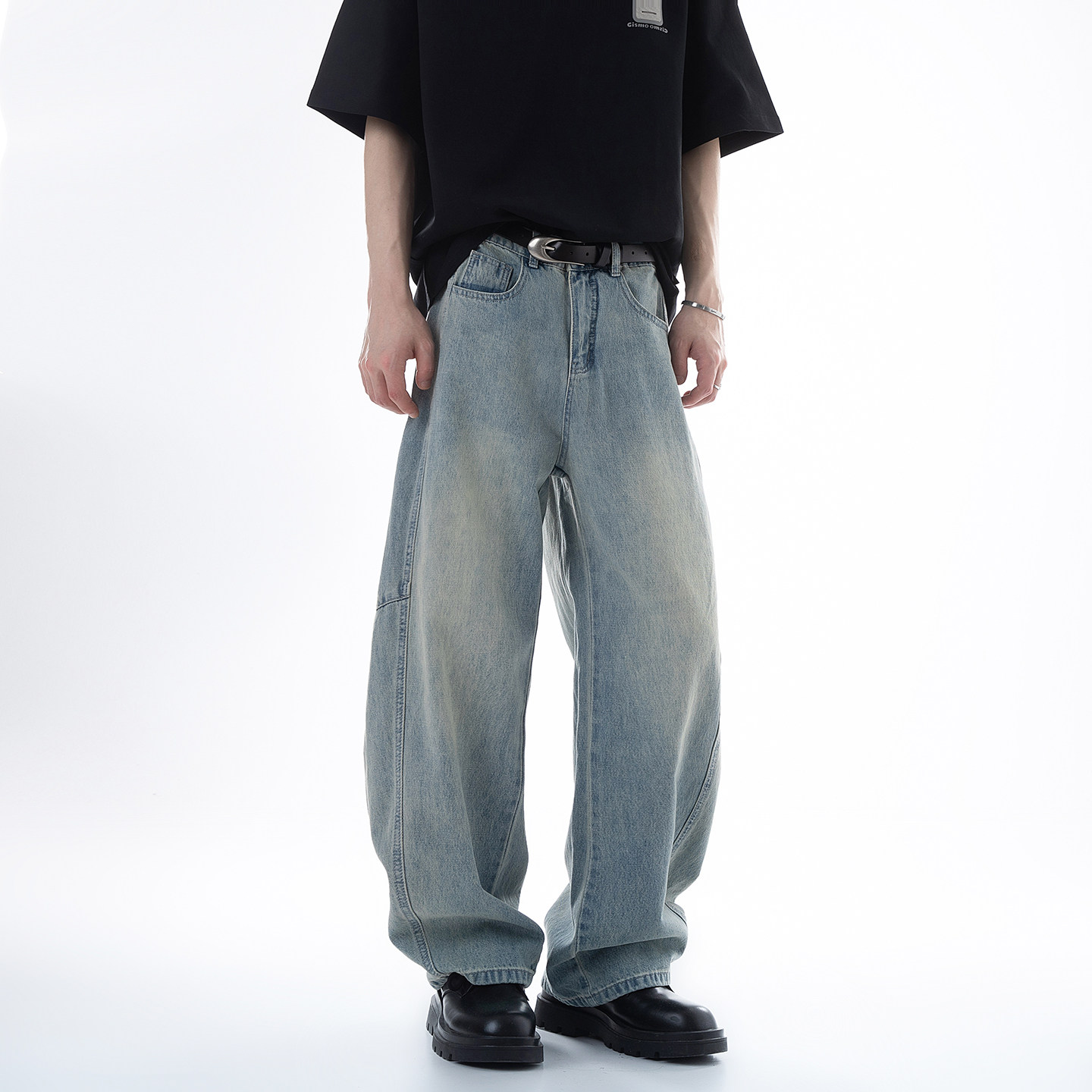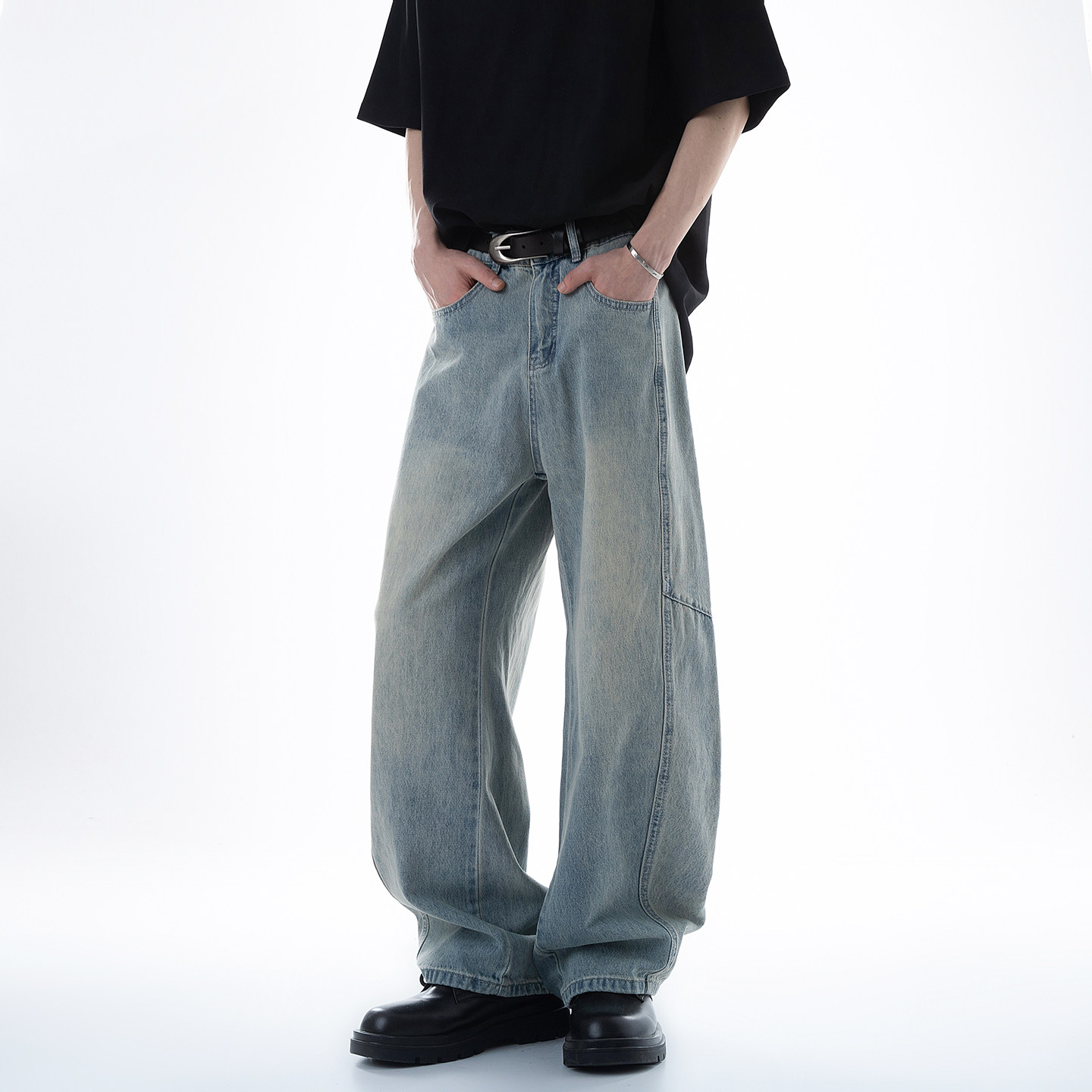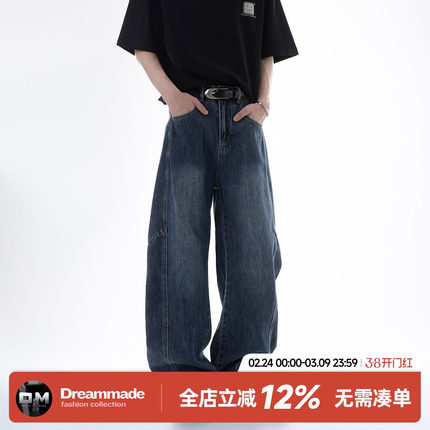 Dream made 美式解构拼接水洗牛仔裤男2026春季新款直筒阔腿裤子