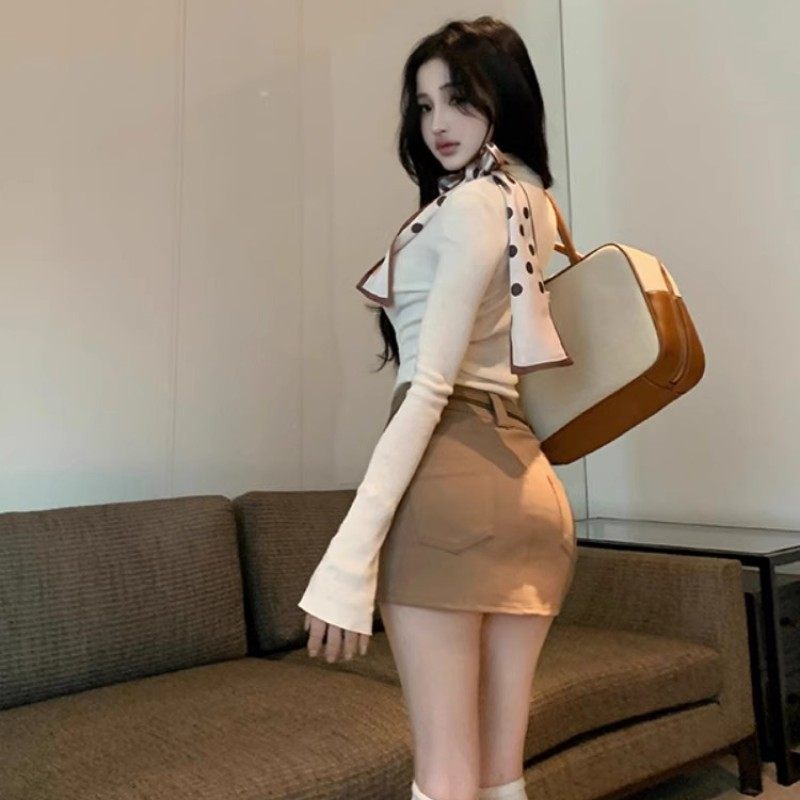 卡其色百搭半身裙女秋冬2025新款气质通勤小个子高腰显瘦包臀短裙