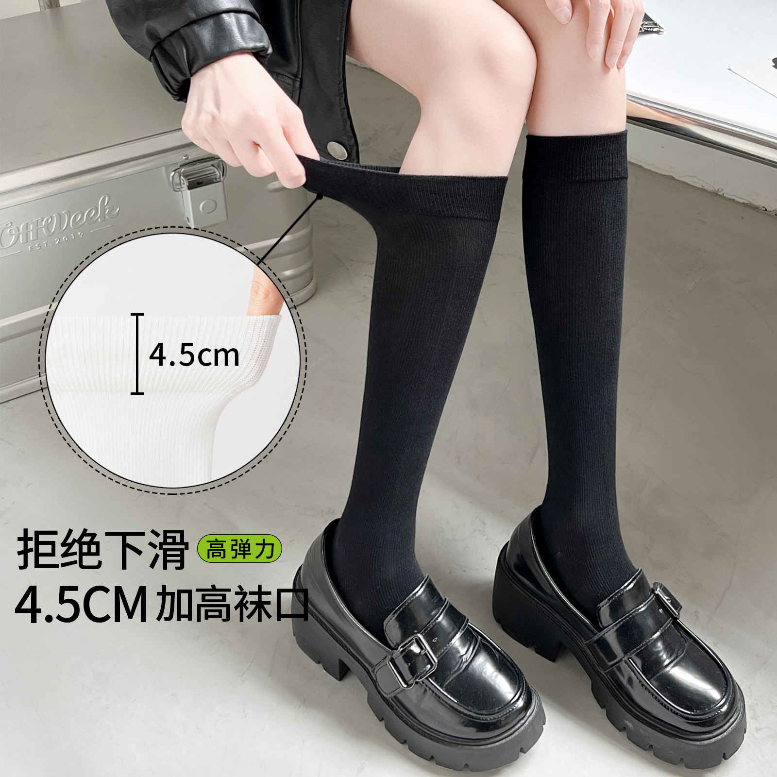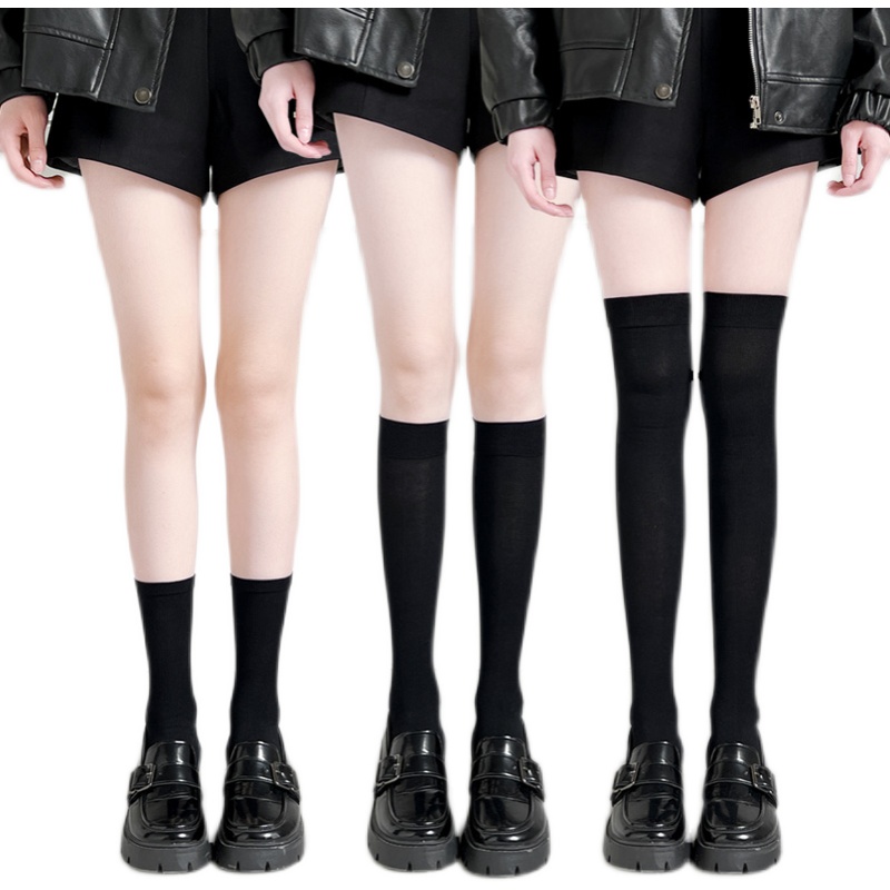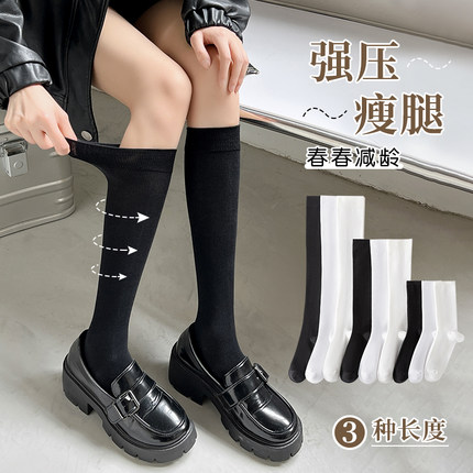 强压力显瘦小腿袜子女夏季薄中筒袜过膝长筒半截黑色jk长筒袜春秋