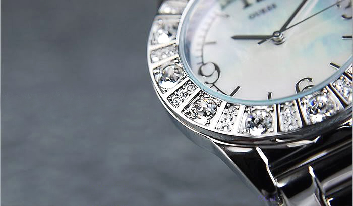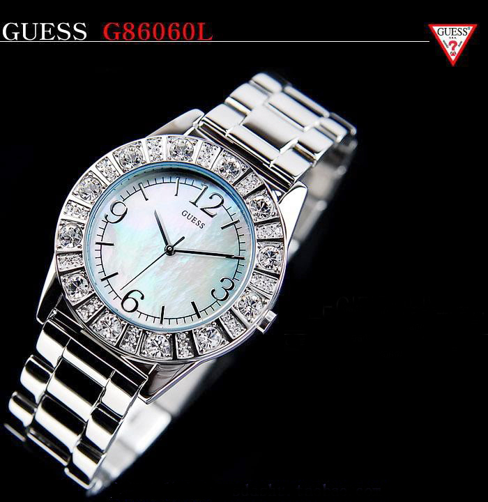guess不锈钢贝母盘石英时尚女表