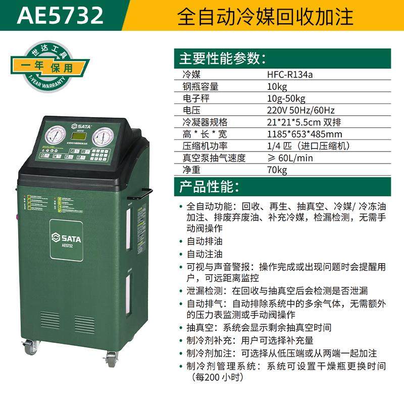 世达全自动冷媒回收加注机排废油捡漏检测抽真空冷冻油加注AE5732