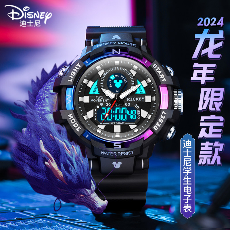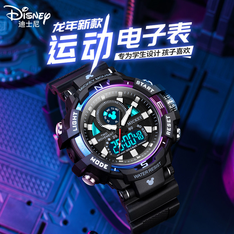 迪士尼手表男款初中高中学生青少年男生儿童男孩只看时间防水电子