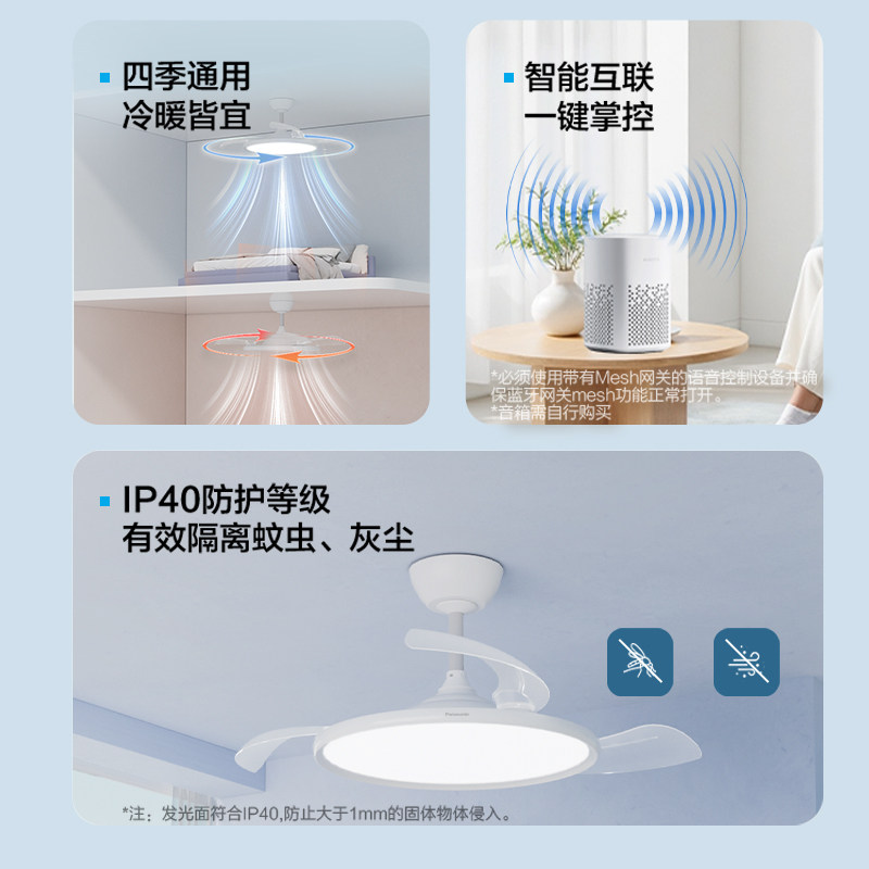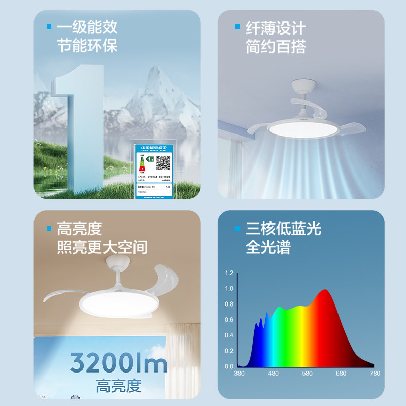 松下现代风隐形风扇灯吊扇灯2025新款瞳悦客厅餐厅卧室护眼照明灯
