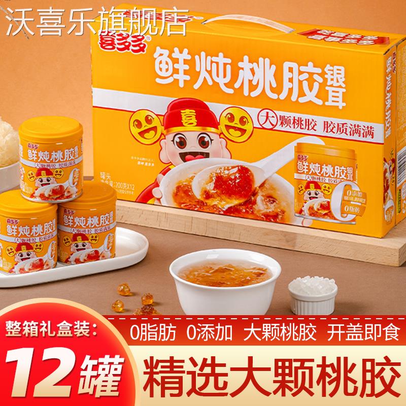 喜多多鲜炖桃胶银耳羹罐头即食早餐代餐速食免煮营养早点心礼盒装