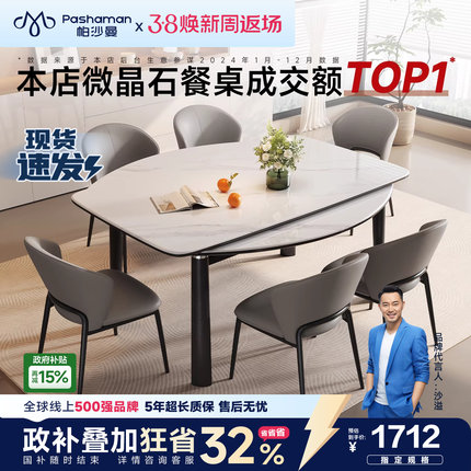 政府补贴帕沙曼全托微晶石餐桌椅组合轻奢家用小户型伸缩折叠圆桌