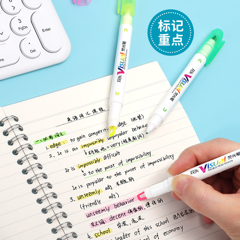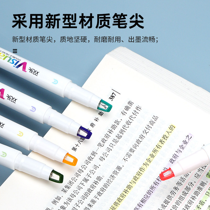 宝克可视窗双头荧光笔彩色标记笔学生划重点做笔记专用速干手帐笔
