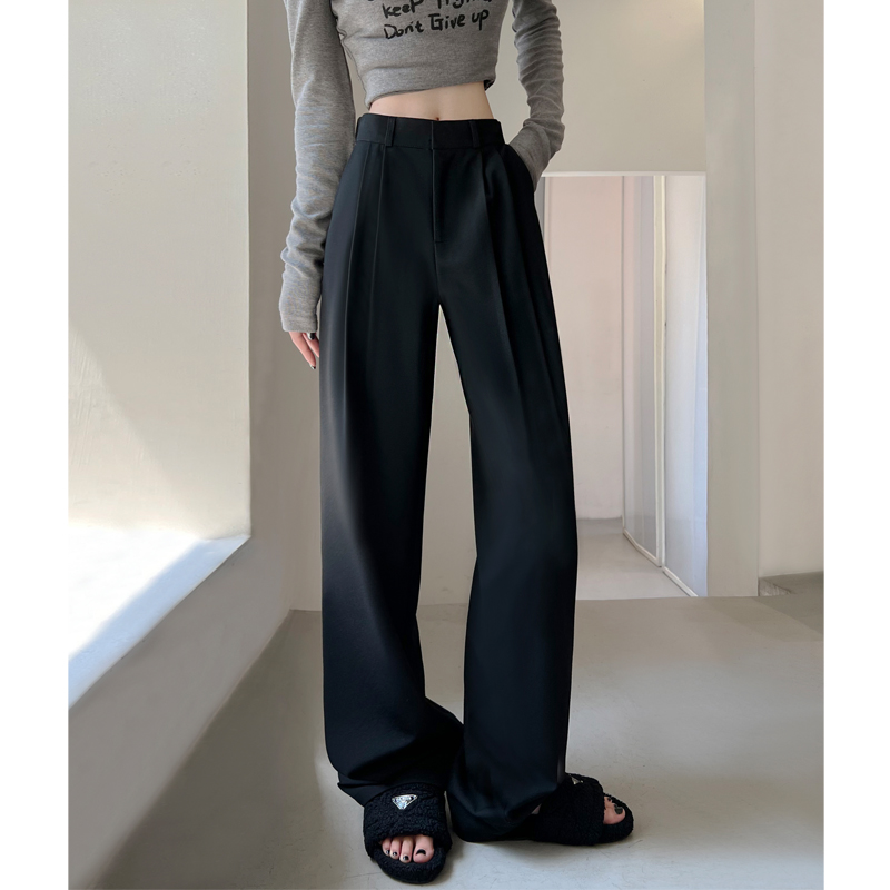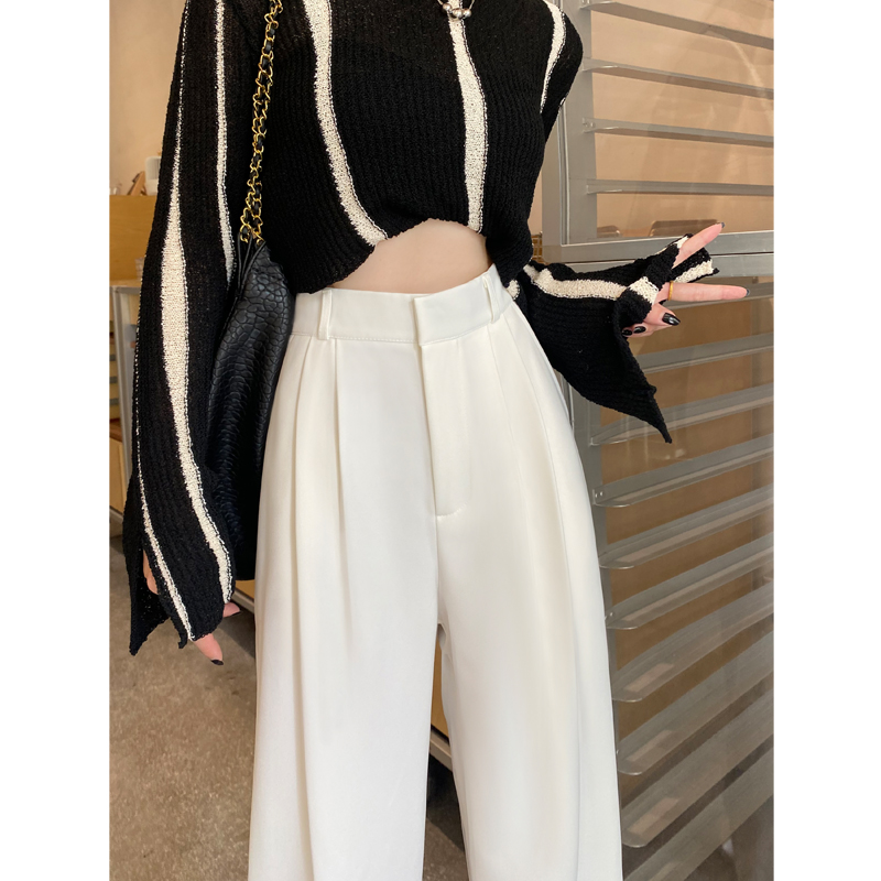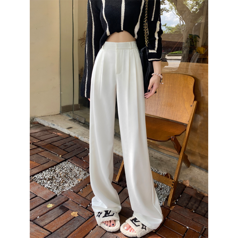白色西装裤女春秋2024新款高腰垂感高级感阔腿裤休闲窄版直筒裤子