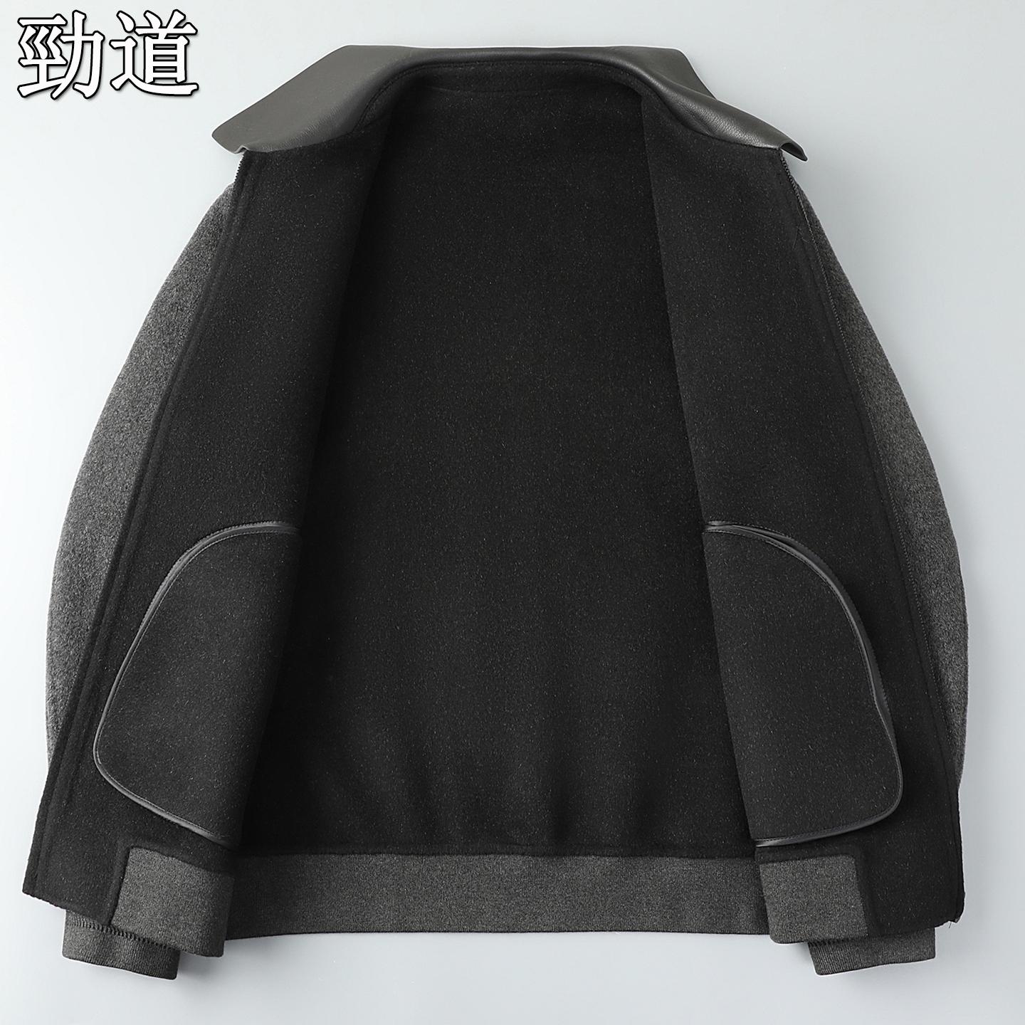 男士双面羊毛呢夹克外套冬季加厚保暖中青年爸爸装商务休闲大衣新