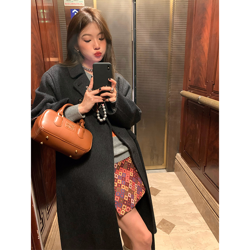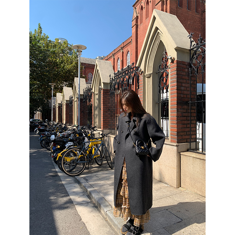 落落狷介中长款双面羊毛大衣女