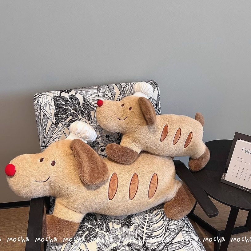 原创厨师法棍狗治愈系玩偶毛绒玩具小狗抱着睡公仔陪睡长条抱枕