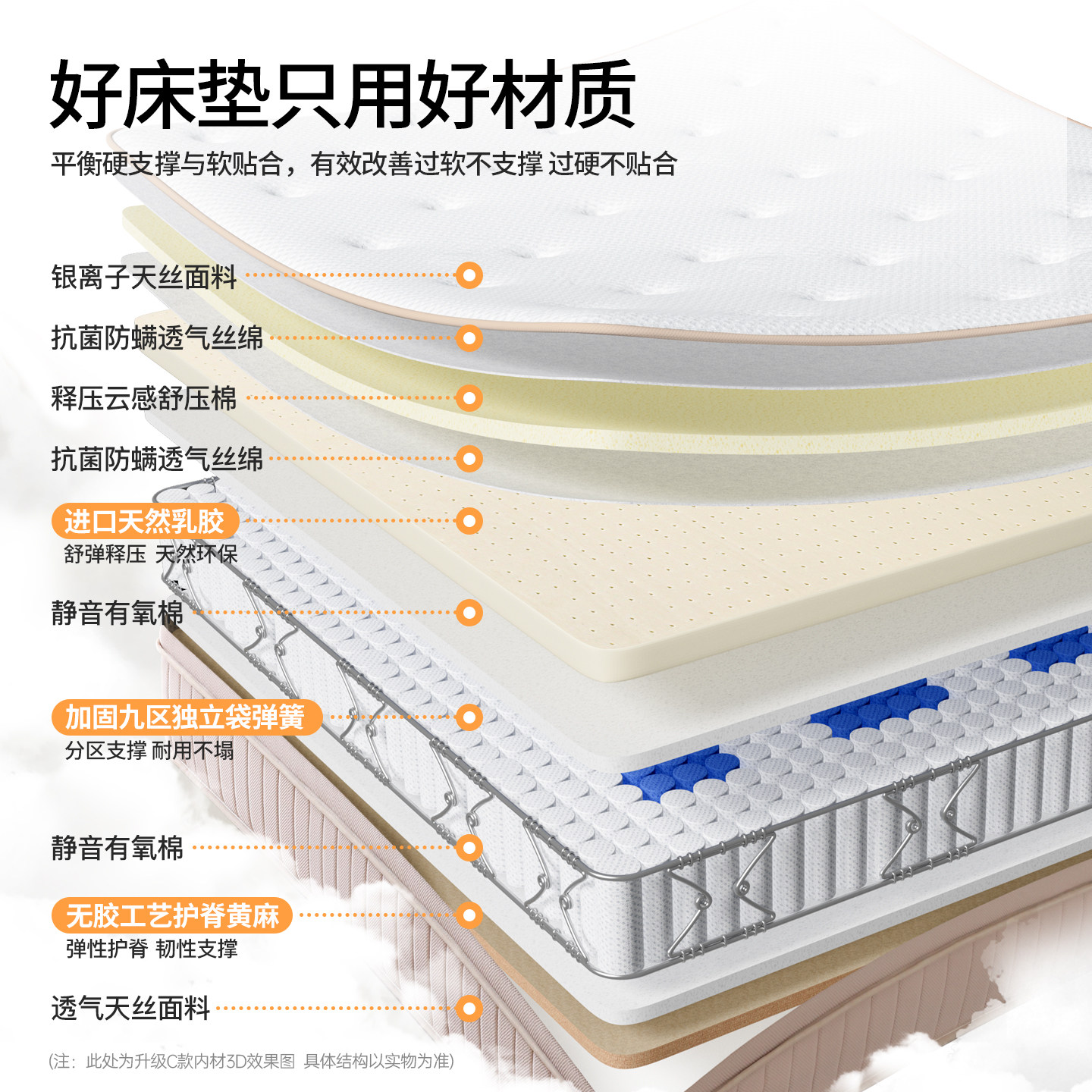 悠梦思乳胶床垫独立弹簧席梦思加厚软硬适中家用护脊黄麻酒店定制