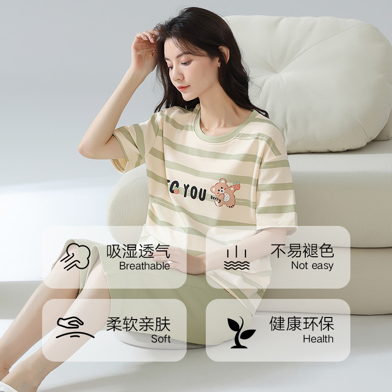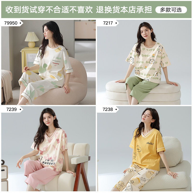 南极人睡衣女春夏季纯棉短袖七分裤家居服套装2026新款可外穿夏天