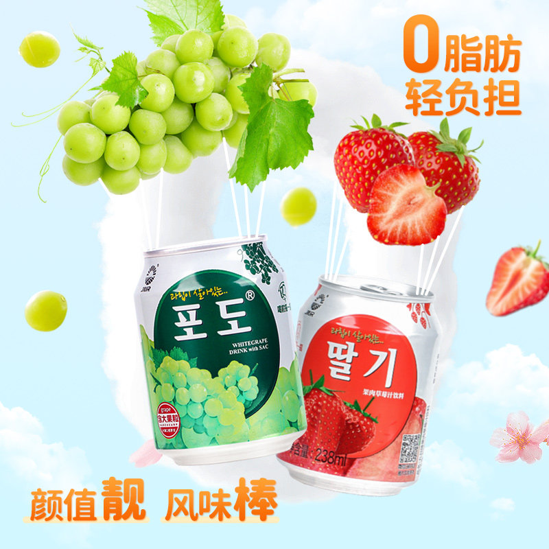 九日牌果肉果汁葡萄草莓黄桃西柚芒果味果肉饮料238ml*10罐组合装