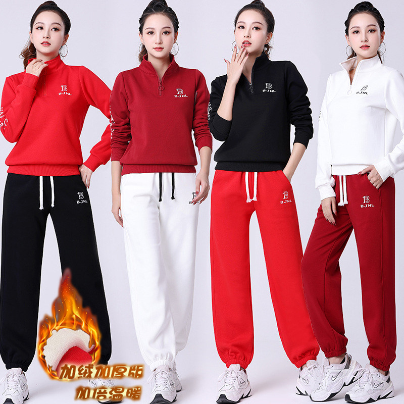 2024冬季新款加绒加厚广场舞服装团队时尚运动休闲健身服套装秋冬