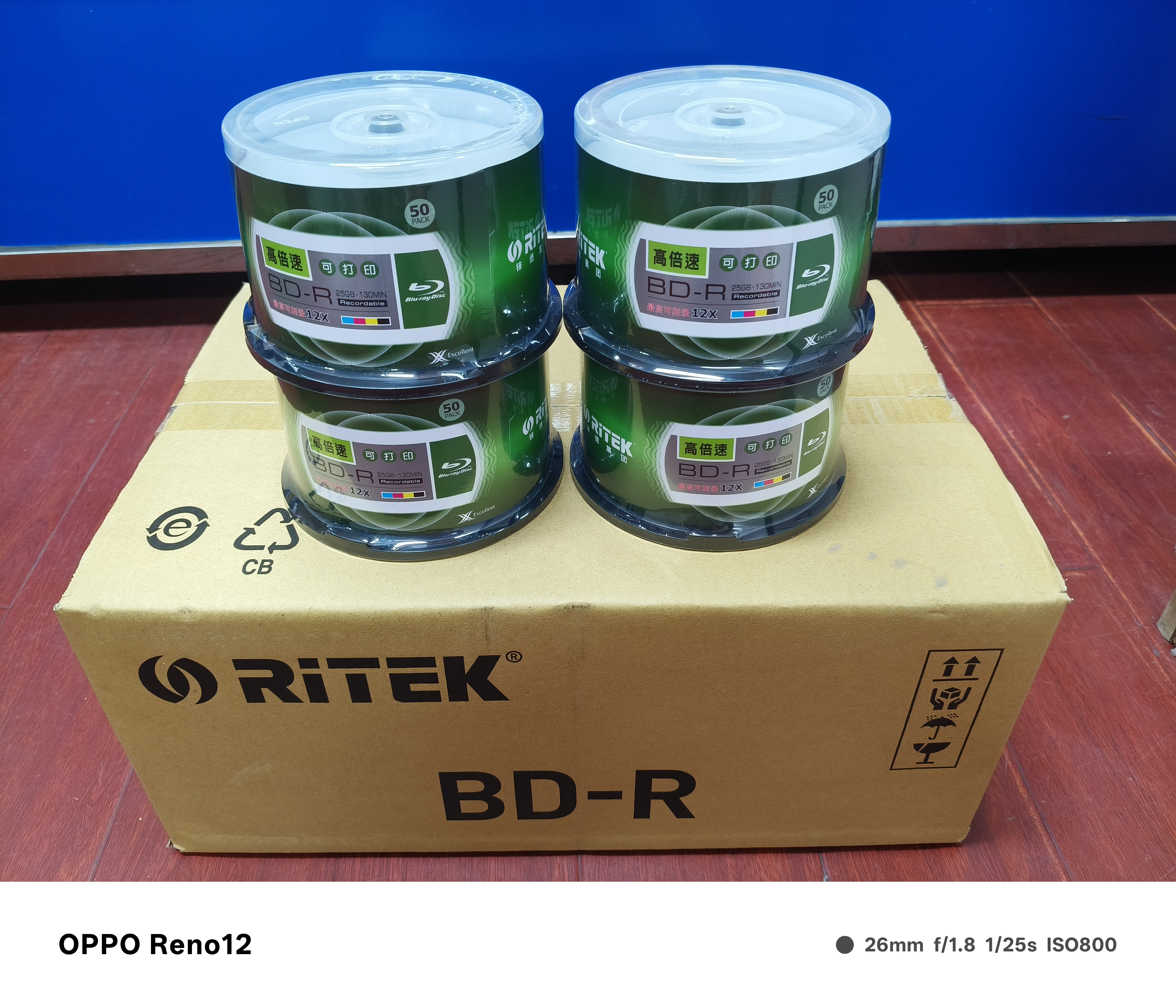 铼德Ritek BD-R 10速12速25G/50G蓝光高倍速打印桶装刻录盘包邮量