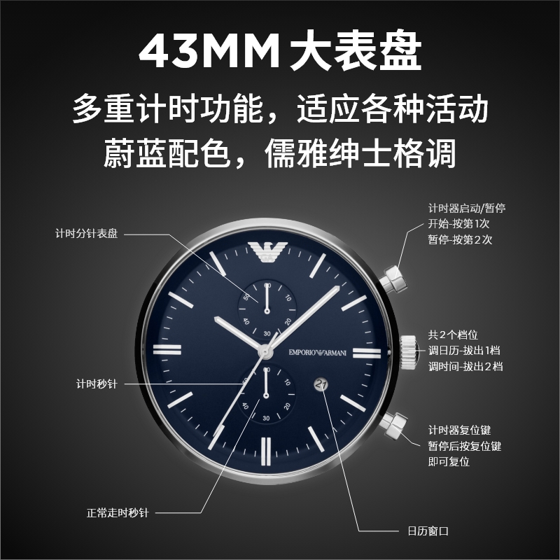 【官方正品】Armani阿玛尼男士手表多功能大表盘休闲男表AR1648