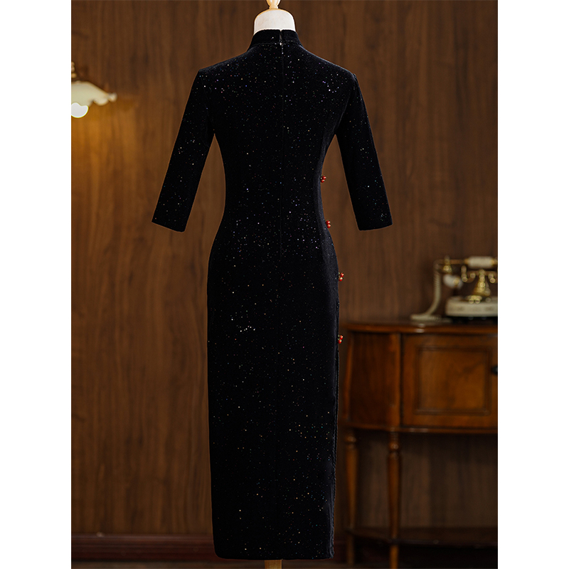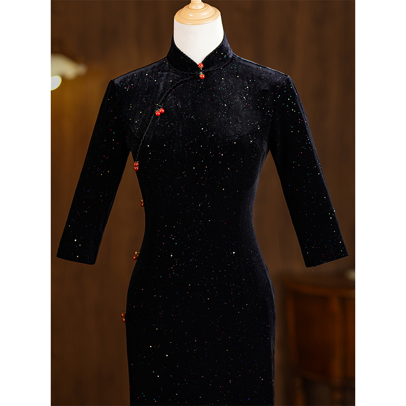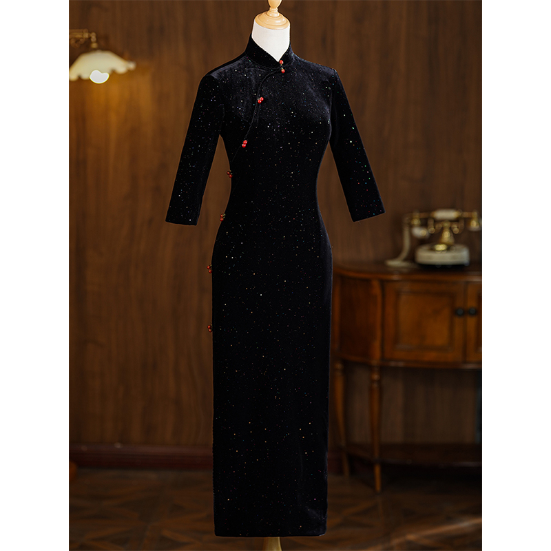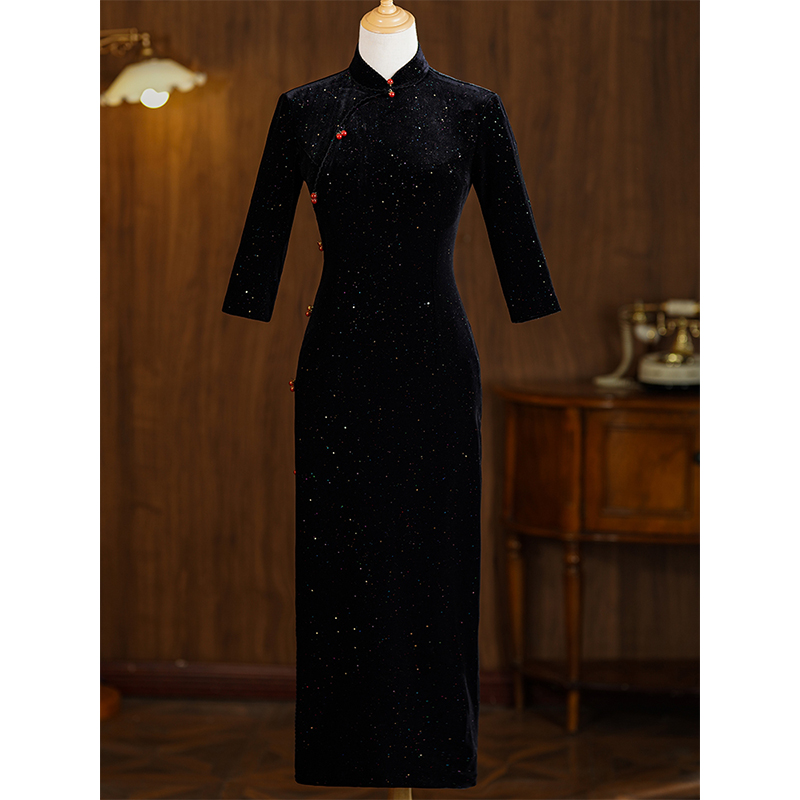 黑色旗袍2024年新款女冬季
