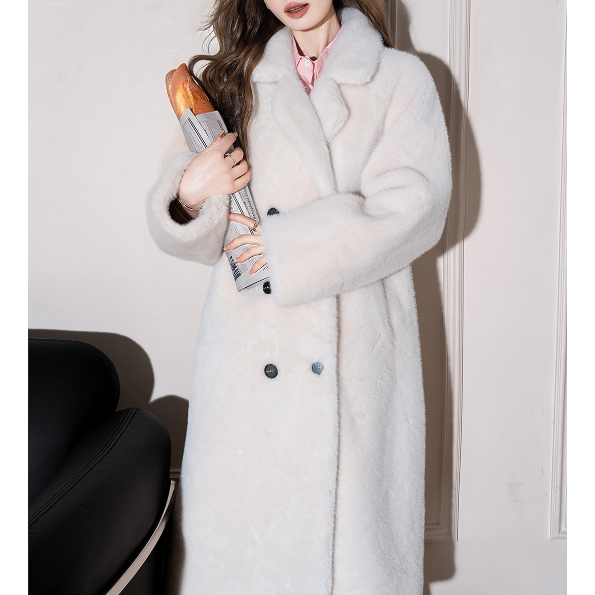 唐狮2025秋冬外套翻领女仿皮草大衣长款保暖高级感时尚气质超好看