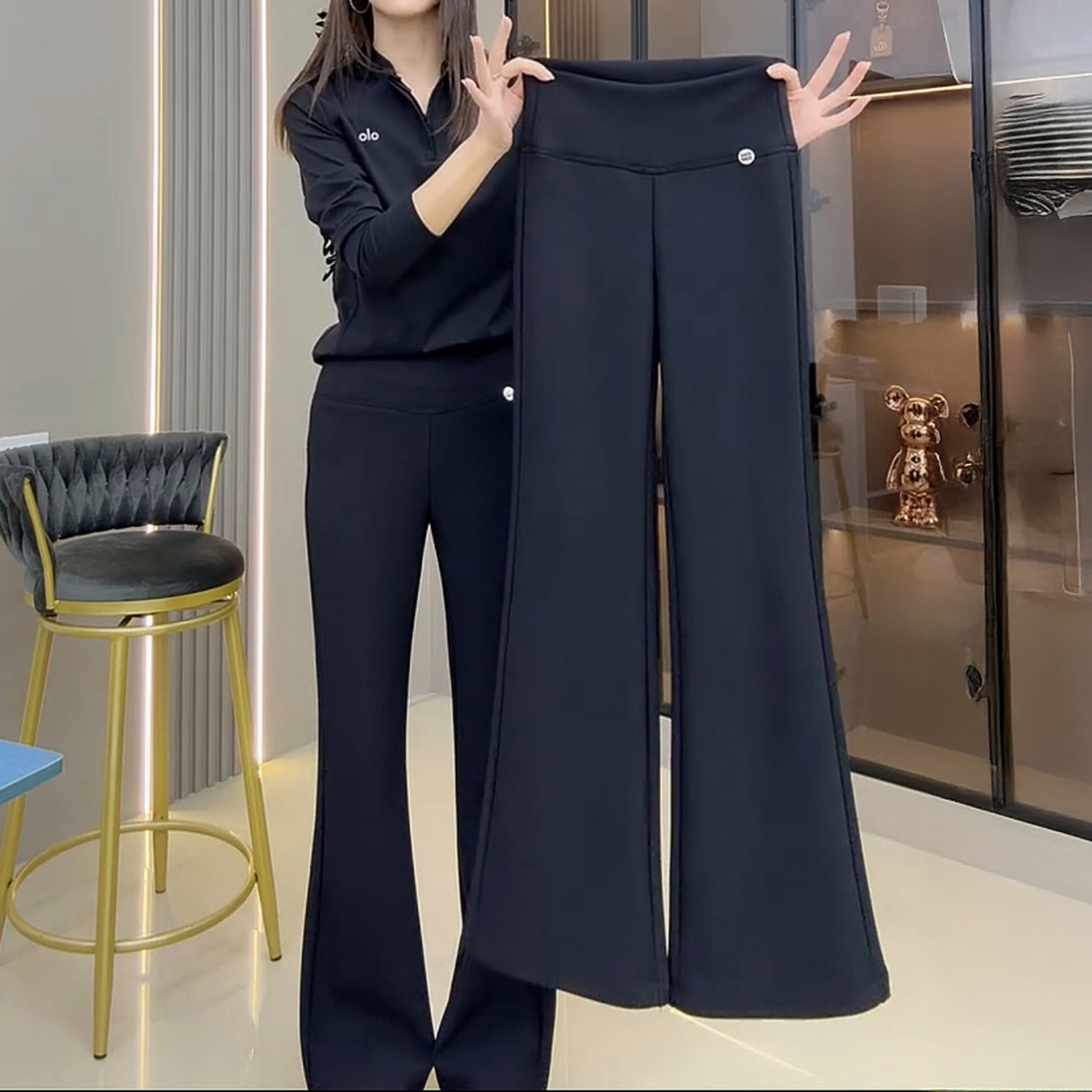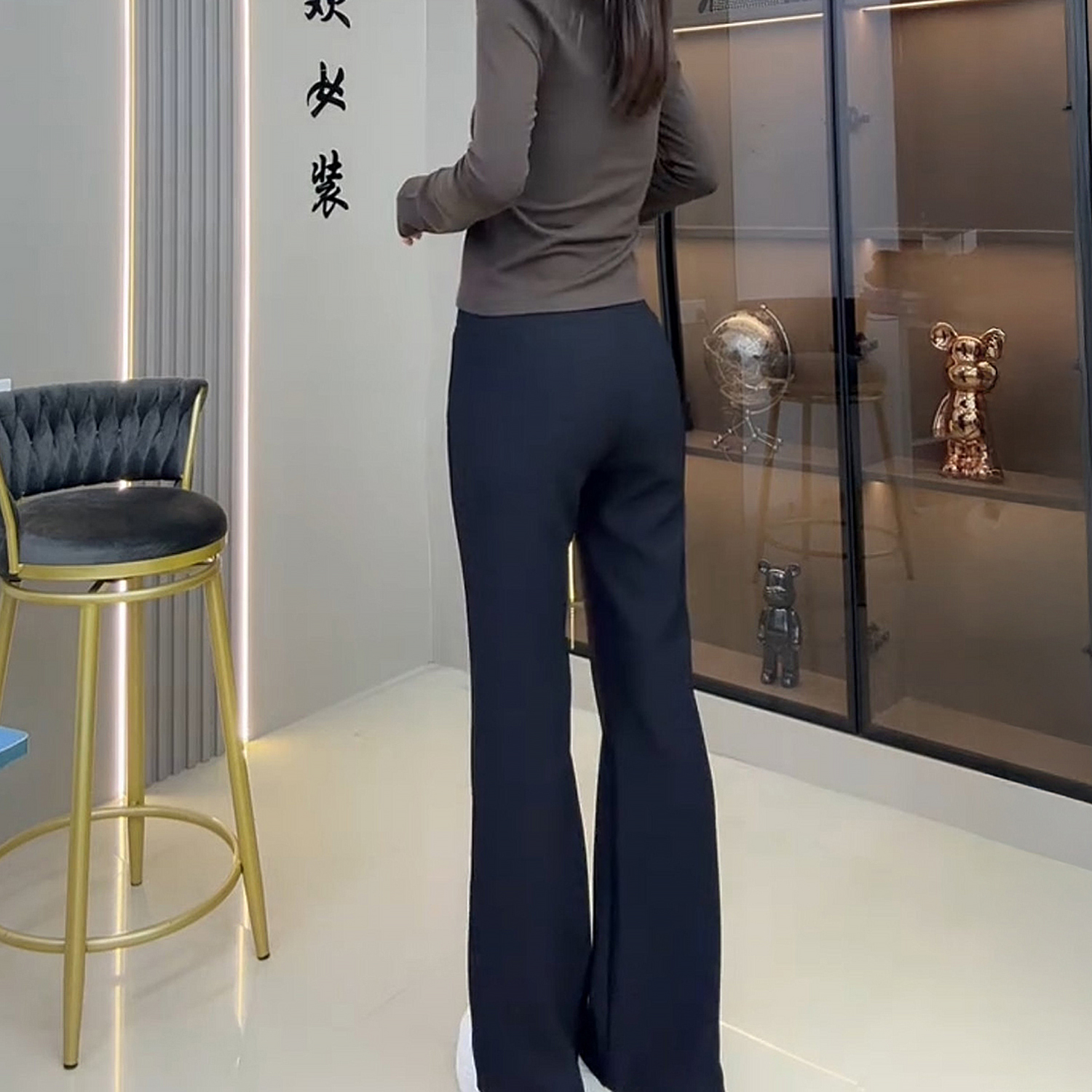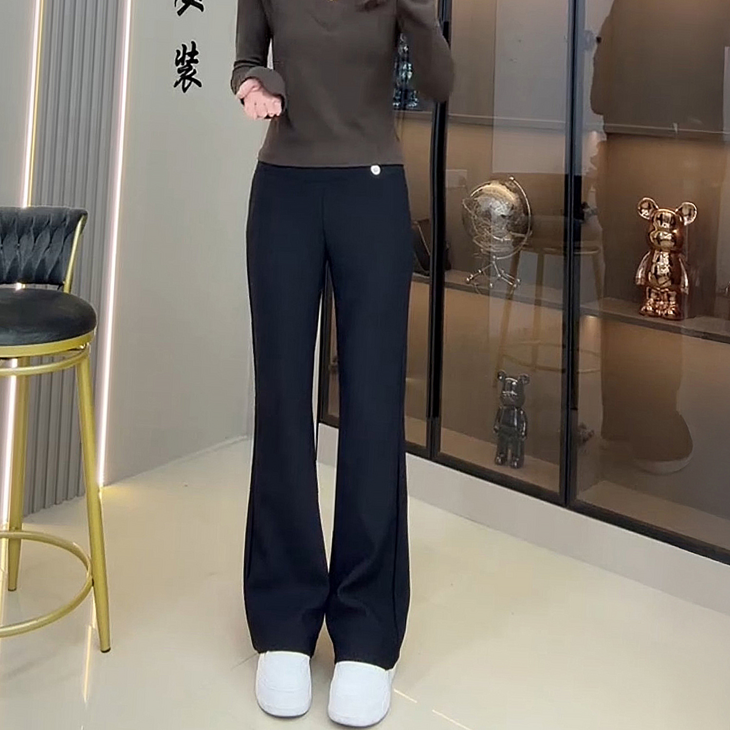 黑色微喇西装裤女2025新款秋冬加绒高腰显瘦直筒阔腿裤休闲长裤子