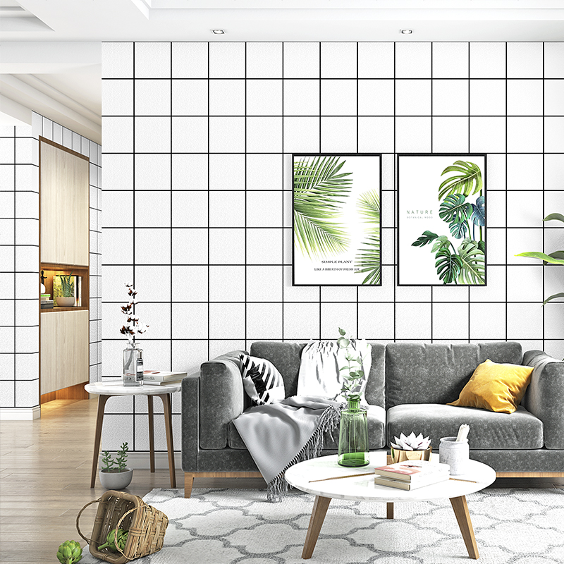 北欧ins风格背景墙壁纸 黑白格子几何网红奶茶店工作室服装店墙纸