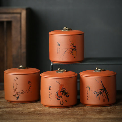 梅兰竹菊普洱家用陶瓷紫砂茶叶罐