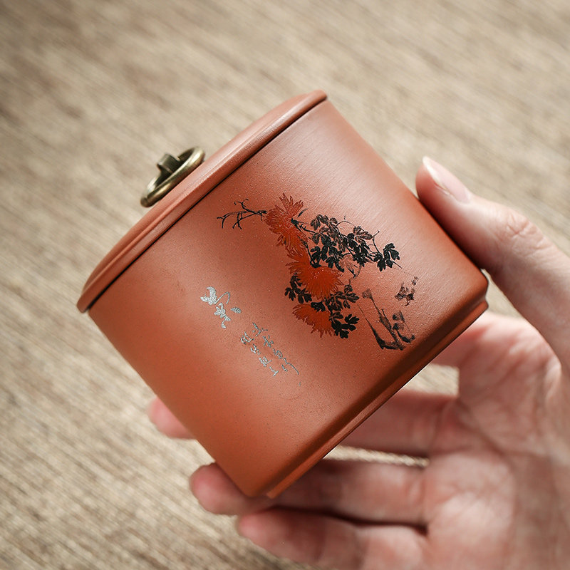 紫砂茶叶罐梅兰竹菊小号密封罐普洱红茶盒家用陶瓷储存醒茶罐防潮