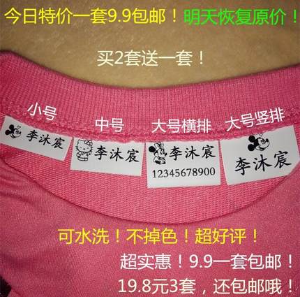 姓名贴布可缝名字贴水洗唛可缝防水宝宝入园领标水洗标签布标订做