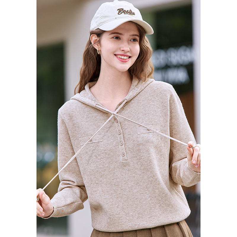 betu百图法式软糯连帽针织衫女套头2025年春季新款宽松外穿毛衣