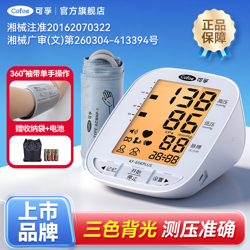 可孚电子血压计血压仪测量仪家用量血压高精准臂式医用充电测压仪