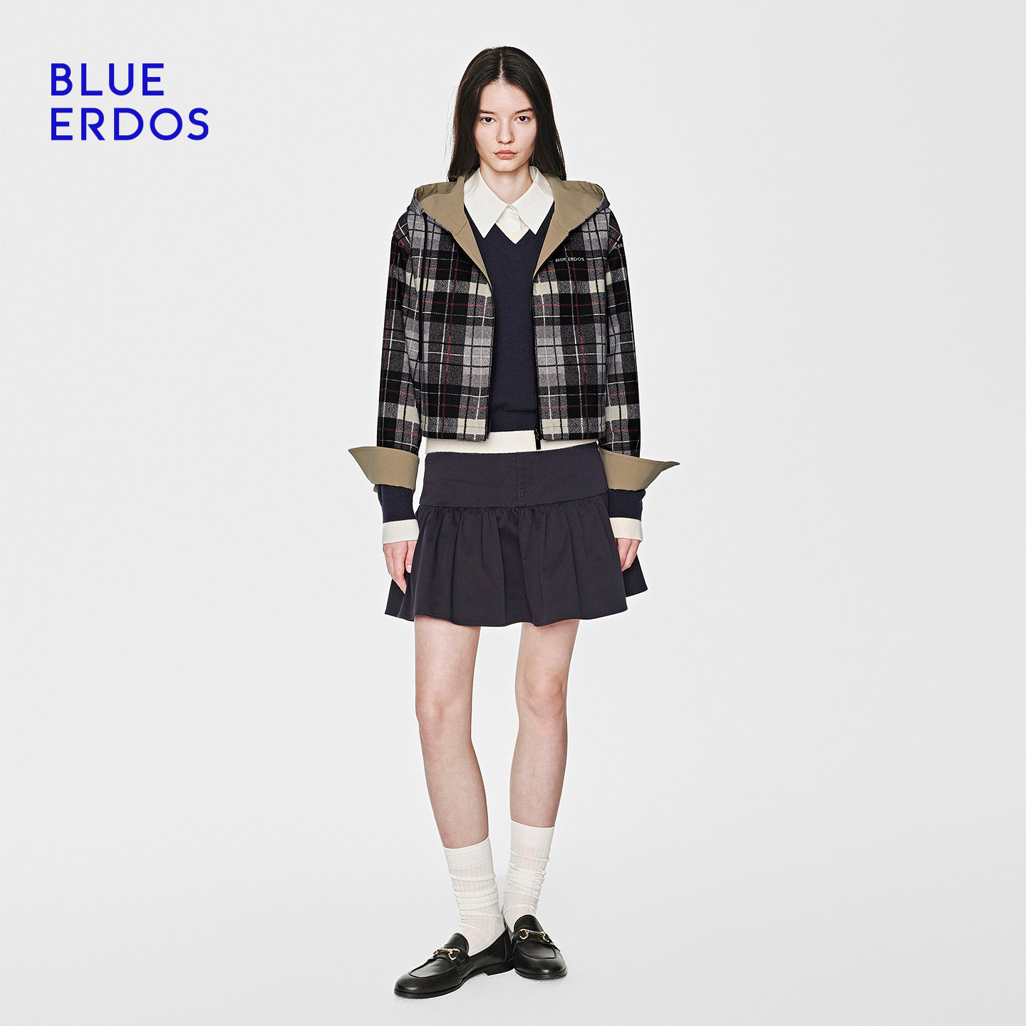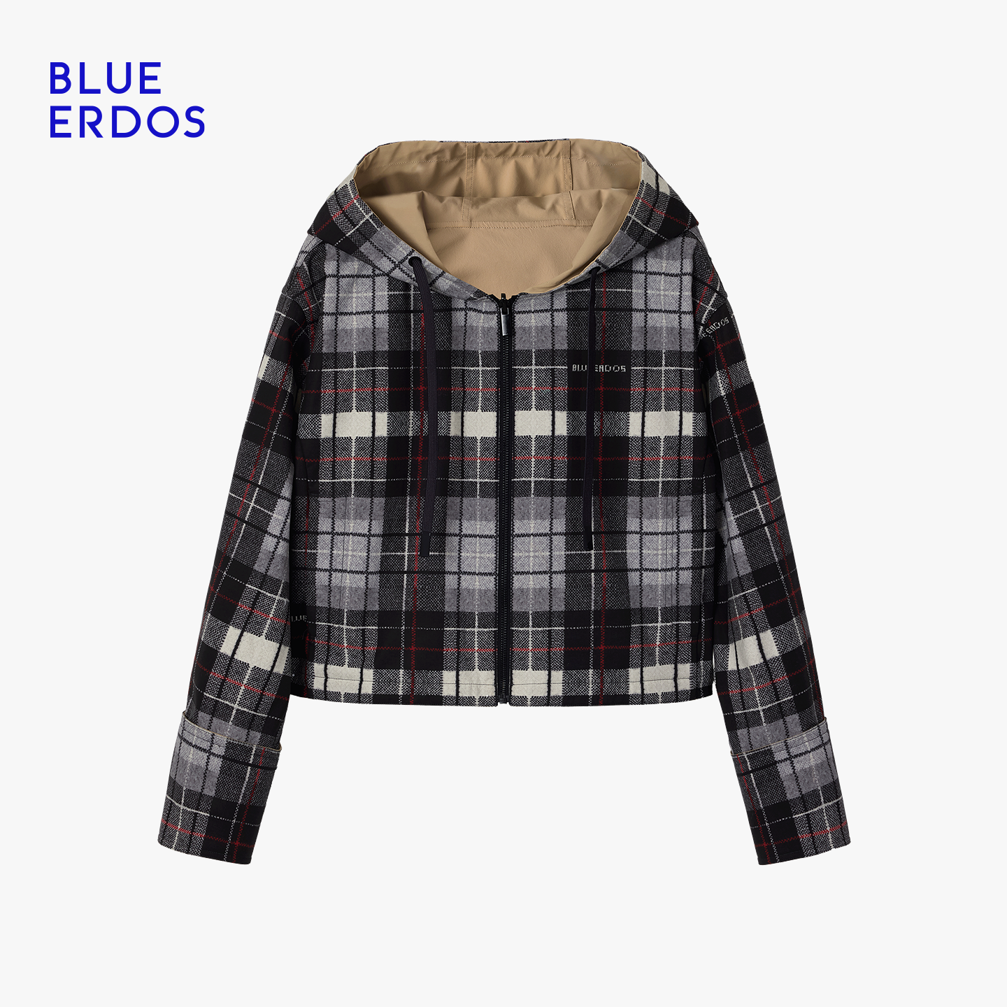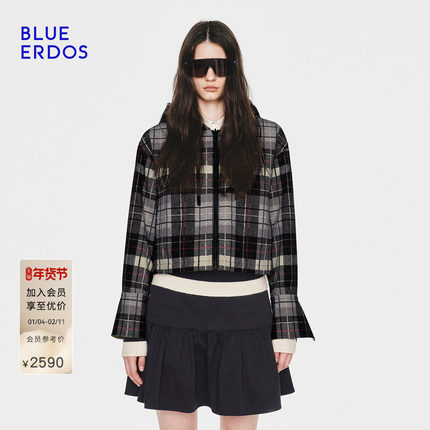 【100%棉】BLUE ERDOS26早春新品英伦风双面穿连帽拉链夹克外套女