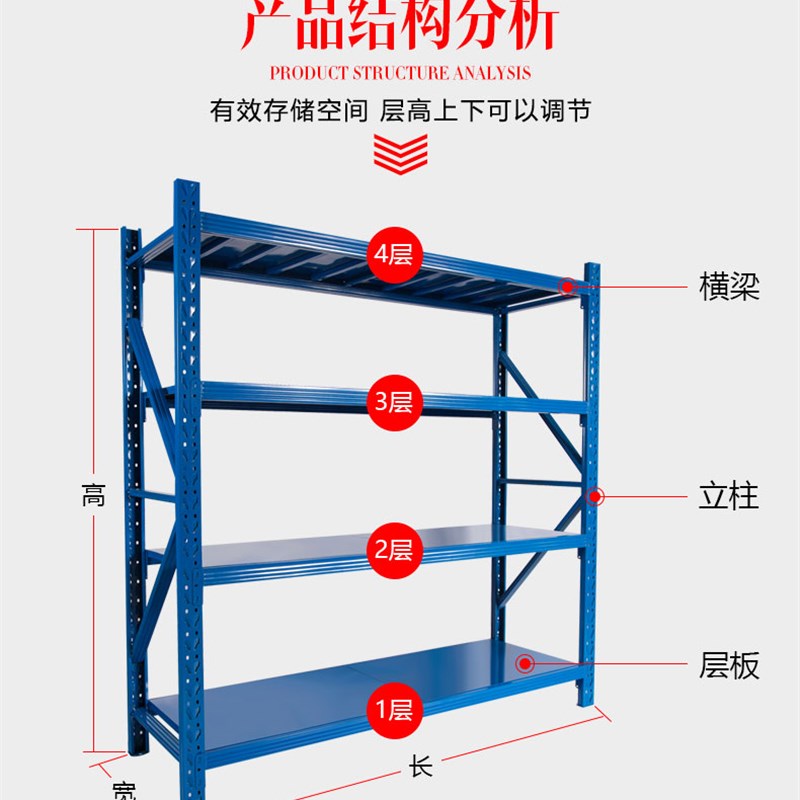加厚仓库货架置物架地下s室家用储物架超市重型多层仓储货物铁架