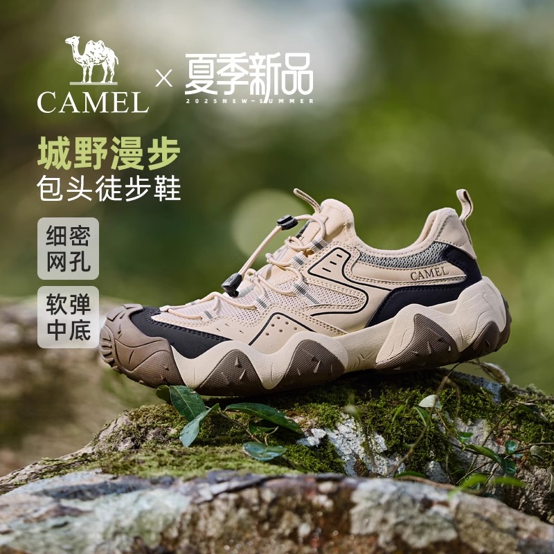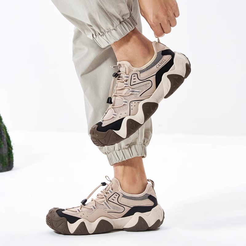 骆驼男鞋2025春季新款户外徒步鞋男透增高运动休闲鞋一脚蹬网鞋男