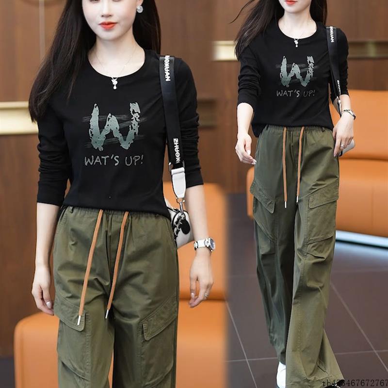 时尚套装女2025秋季新款时髦洋气长袖T恤工装阔腿裤休闲两件套潮