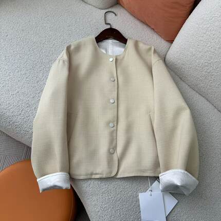 惠衣阁秋季女长袖圆领外套小香风短款外套韩版休闲通勤西装外套